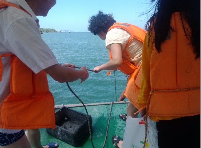 第二天,公司又组了海上捕鱼活动,,于是我们再一次踏上渔船,享受着大海的拥抱和飘逸的海风,让我们每一根神经都放松到了极点,这时,胆大的两位同事还在船头上演了一段"朱丽叶和罗密欧".