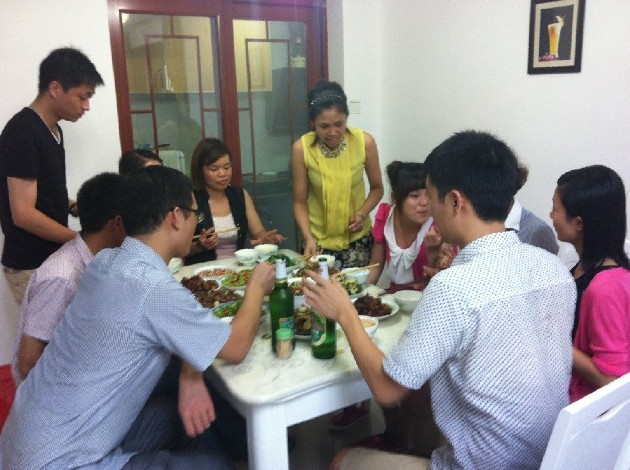 7月20号在我们同事的热情邀请下,邀请我们到了她家,她亲自操办了所有的晚餐!最拿手的招牌菜全都上了,如红烧肉、酸菜鱼。啤酒鸭等一些老家特色菜全部拿出来了!忙活了一个下午5.30准时吃饭,眼看一桌色香味俱全的菜,同事都赞不绝口!大家有吃有说有笑,开玩笑开到笑破肚皮,此时此刻大家真的很开心!!欧普特兄弟姐妹都来自五湖四海,大家能相聚在一这刻!感觉很幸福,很开心!让我们永远记住这一刻!